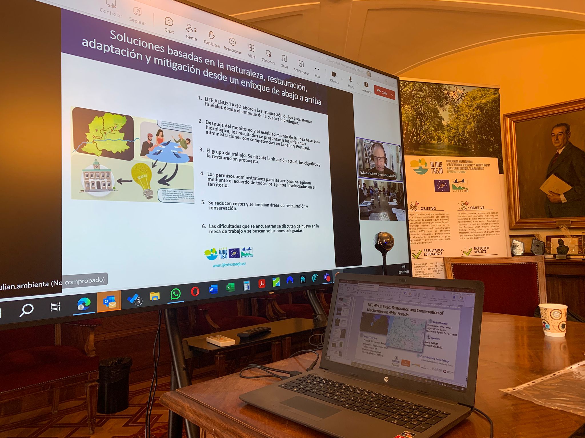 Durante el encuentro se presentaron los principales avances, retos y resultados del Proyecto LIFE Alnus Taejo, centrado en la restauración de los bosques de alisos en la cuenca transfronteriza del Tajo, un hábitat clave para la biodiversidad y la resiliencia climática.