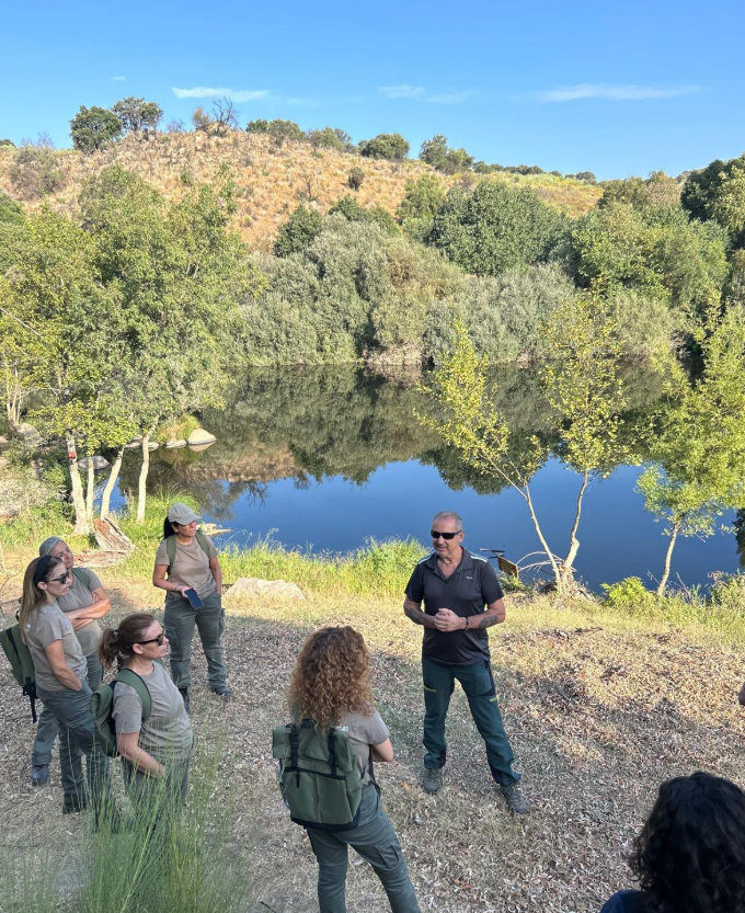 Durante la jornada se abordó el impacto de las especies exóticas invasoras, una de las principales amenazas para la biodiversidad, y se presentaron estrategias de control y restauración basadas en la naturaleza. Los asistentes pudieron conocer de primera mano los trabajos más recientes realizados en Valdeobispo, así como los ensayos con fosfito que se están desarrollando en colaboración con la Confederación Hidrográfica del Tajo (CHT) y la Universidad de Extremadura (UEX), centrados en la lucha contra la Phytophthora alni, un patógeno que afecta gravemente al aliso (Alnus glutinosa) y pone en riesgo la salud de los bosques de ribera.