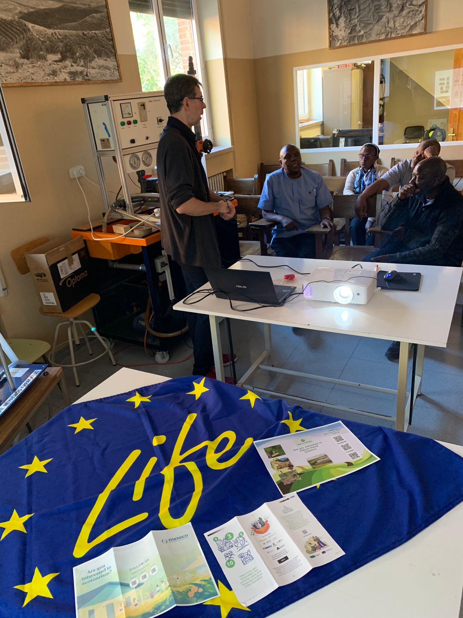 La reunión ha incluido un viaje de campo que comenzó con un taller sobre Soluciones Basadas en la Naturaleza (NbS) impartido por el profesor Guillermo Tardío en el laboratorio de hidrología de la Escuela, y que sirvió también como sesión de networking en el marco del proyecto LIFE Alnus Taejo.
